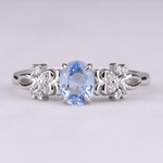 Delicately crafted for grace and charm, this exquisite ring features a brilliant oval-cut blue gemstone at its center, framed by intricate floral-inspired accents. Sparkling white stones arranged like blooming petals create a refined, romantic look, making it perfect for engagements, anniversaries, or simply adding a touch of classic beauty to your collection.